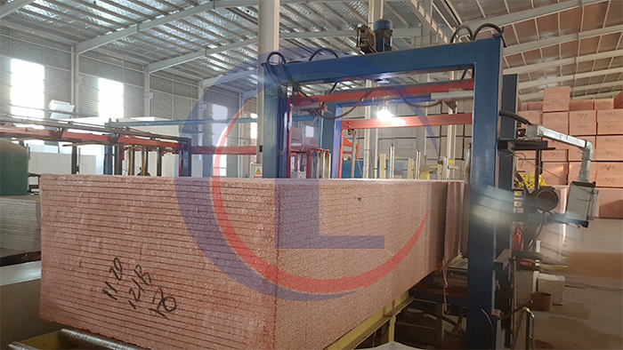 EPS板材切割机,根据客户要求定制,可以实现水平切,竖切和横断切割,用于切割整块大板成所需尺寸,所切板材进一步应用到外墙保温,彩钢夹芯板(活动板房),3D板等多领域。